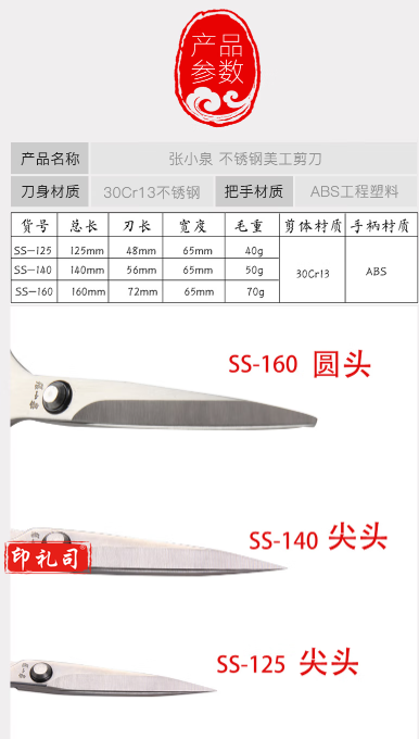 张小泉 办公剪刀 不锈钢家用剪子 手工剪纸学生美工小剪刀 SS-125