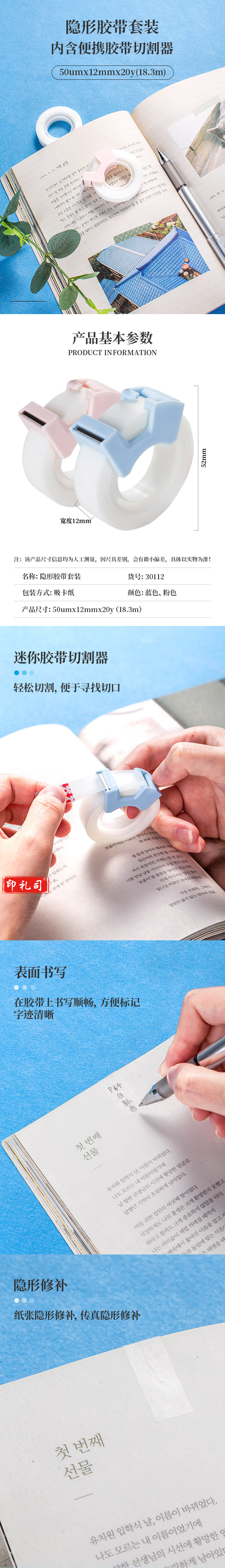 得力(deli)30112隐形文具胶带套装12mm*20y*50um2卷/卡(单位:卡)混色
