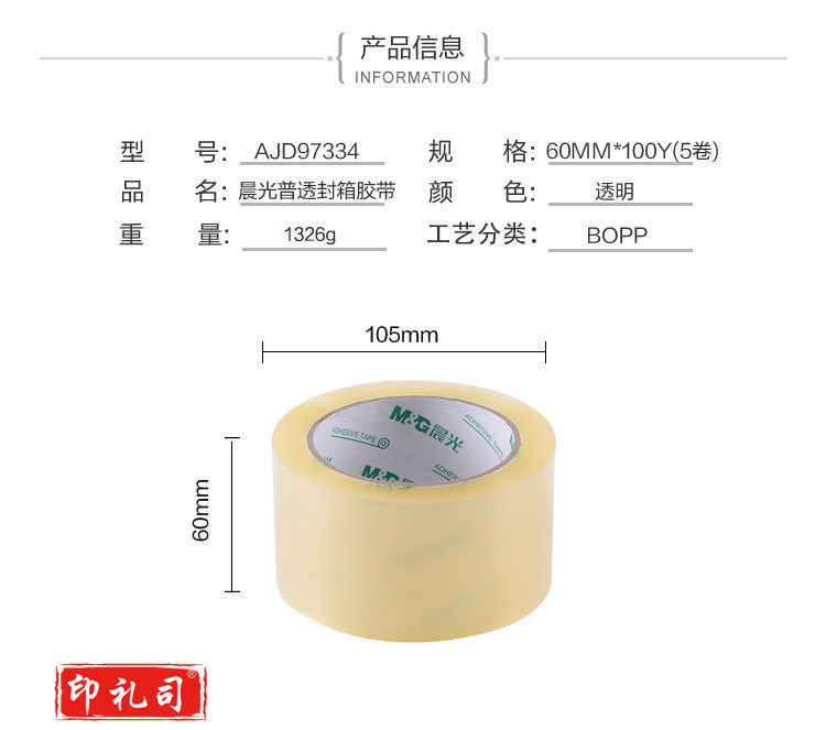 晨光(M&G) 97334普通透明胶带60mm*100y 5卷装