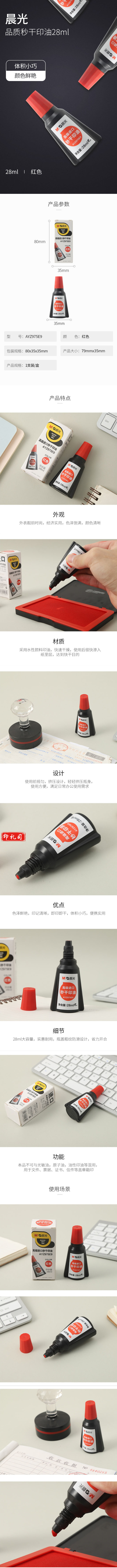 晨光AYZ975E9C 红色 28ml 财务专用便携印油 单瓶装