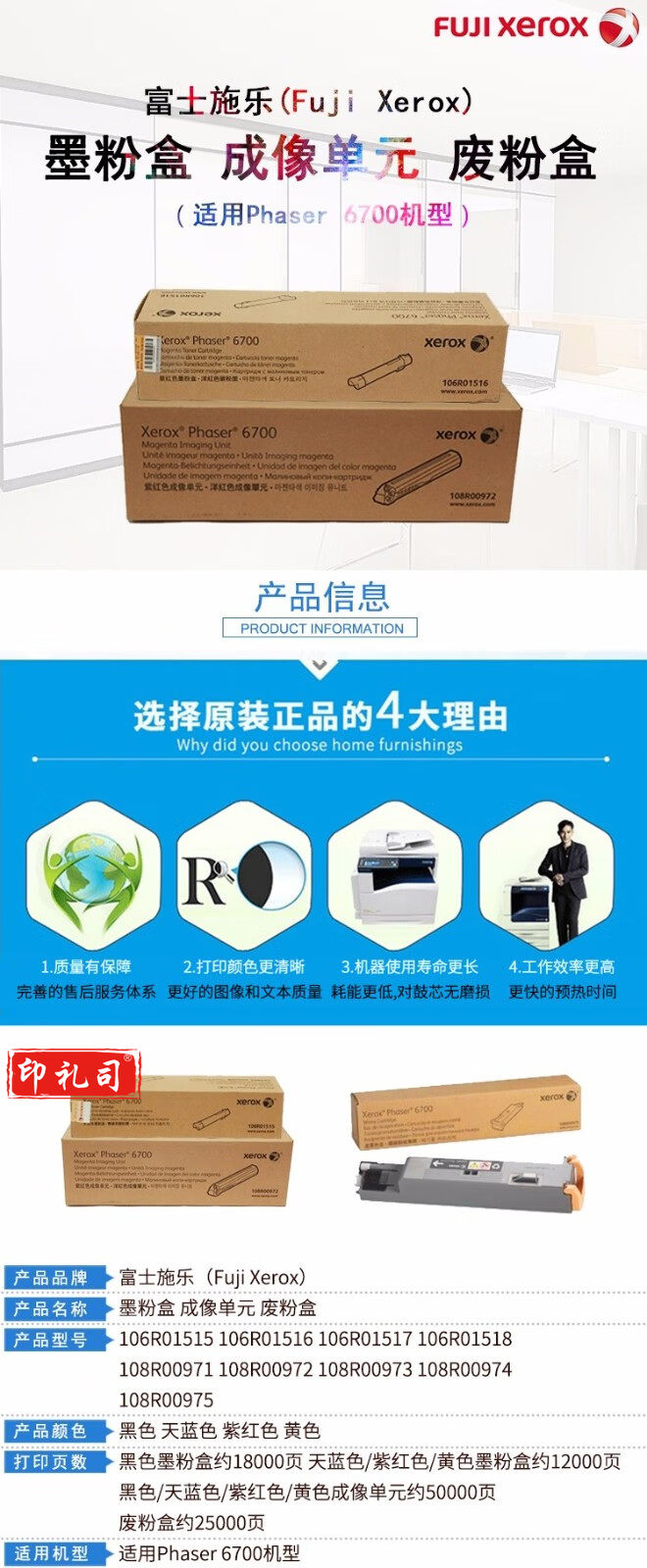富士施乐108R00971 原装天蓝色成像单元 (适用Phaser 6700机型) 约50000页