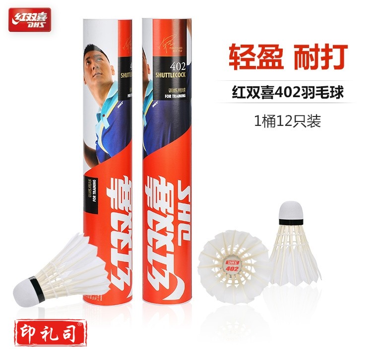 红双喜(DHS)羽毛球 12个装耐打训练比赛娱乐飞行稳定羽球 402
