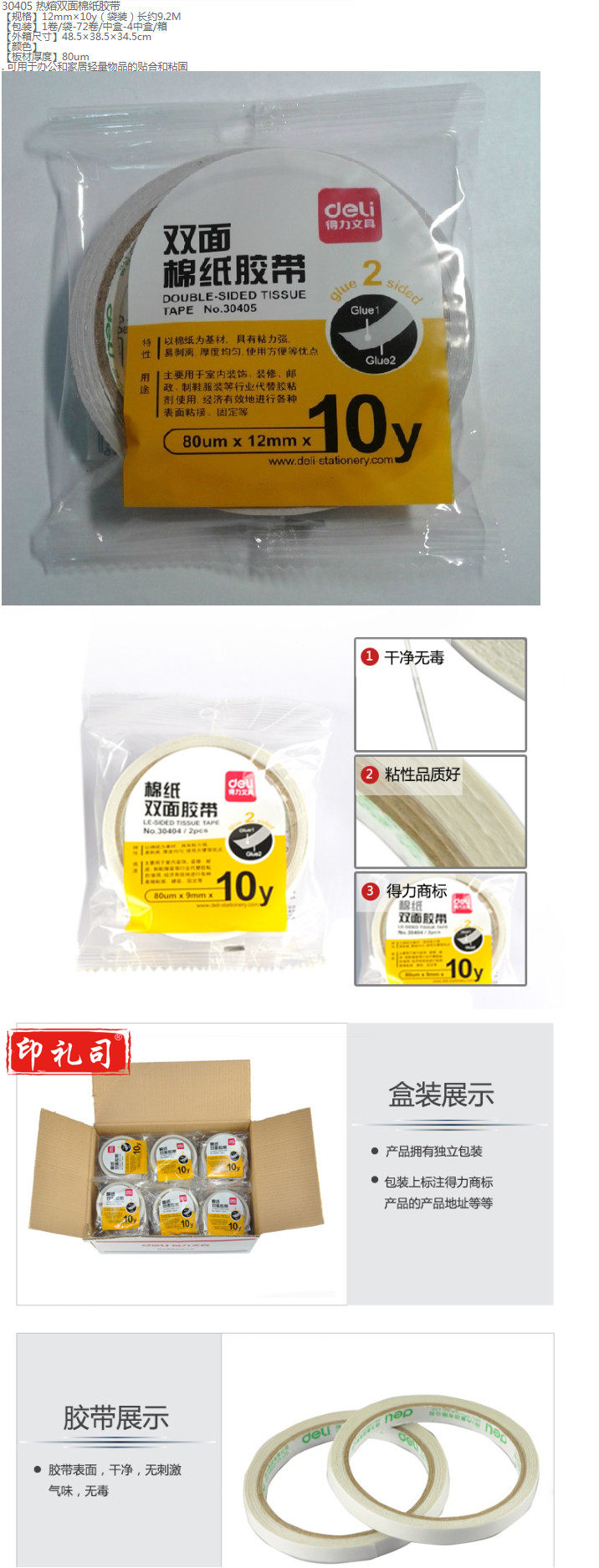 得力30405双面胶12MM*10Y1卷