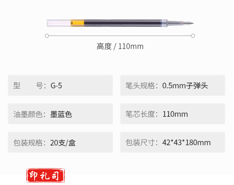 晨光(M&G)中性笔芯按动子弹头0.5mm 适用K35 G-5系列替芯签字笔替芯 AGR67T02 墨蓝色1盒20支装