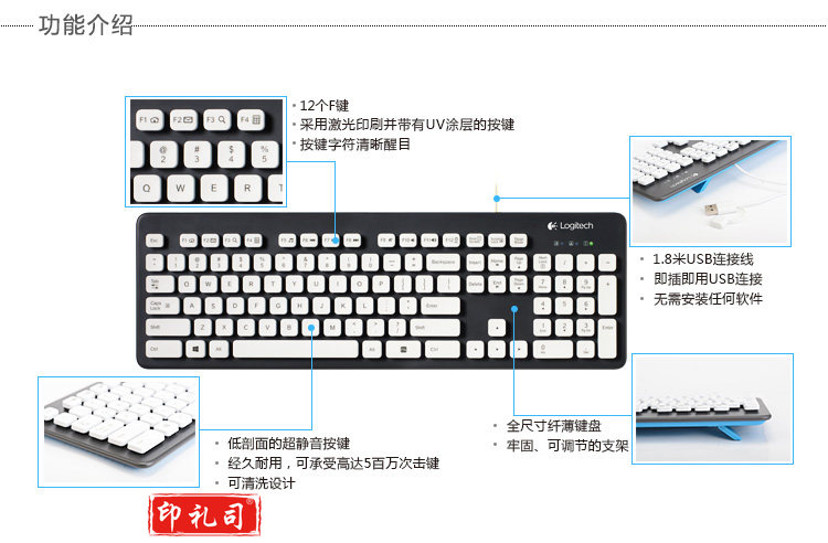 罗技(Logitech)K310 有线水洗键盘