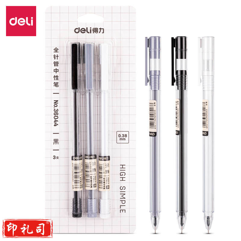 得力36044中性笔0.38mm全针管(黑)(3支/卡)