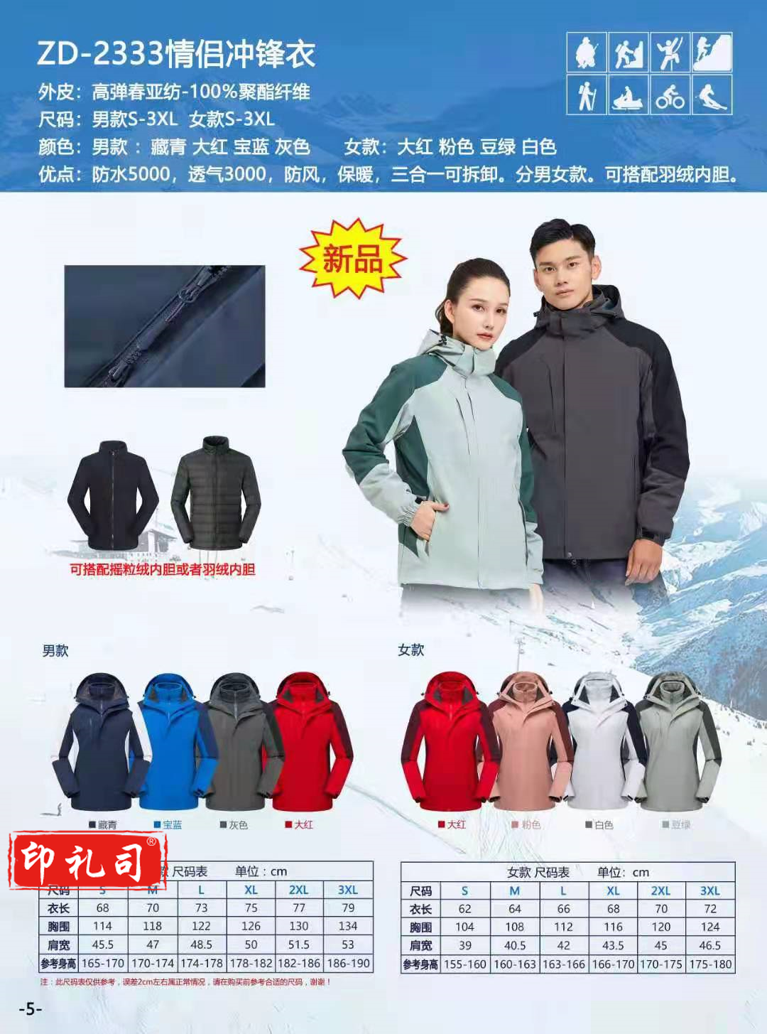 ZD-20210805秋款滑料冲锋衣 男女同款 带内胆