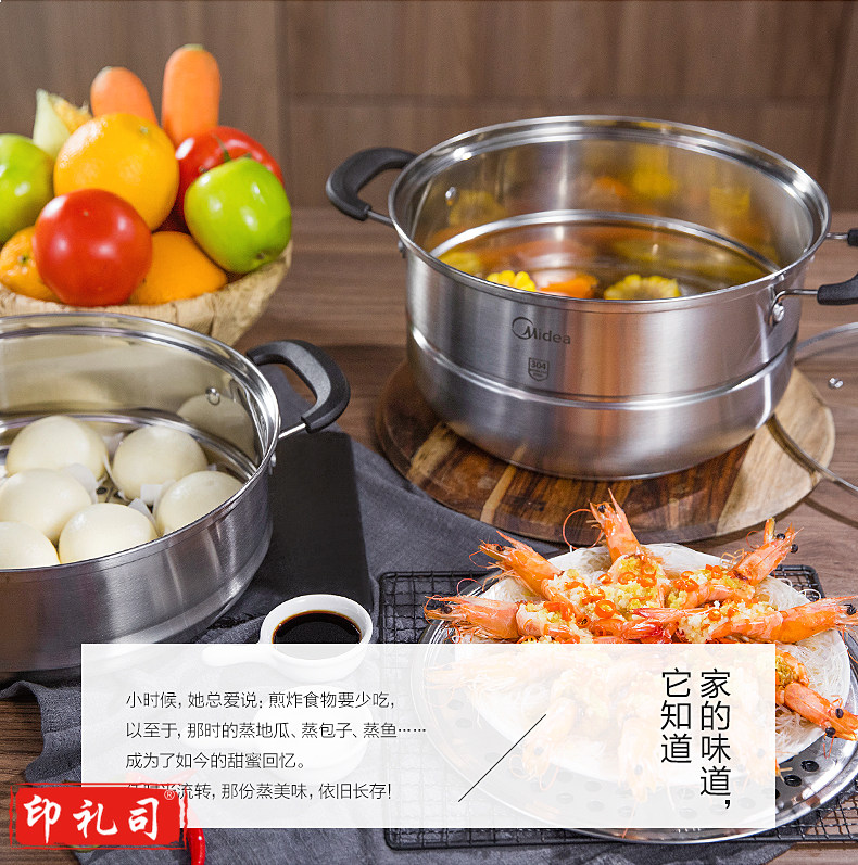美的(Midea) 不锈钢加厚复合锅底二层组合煤气电磁炉通用蒸锅