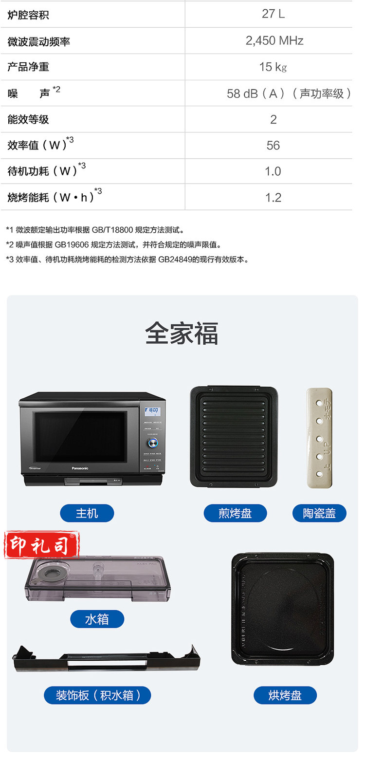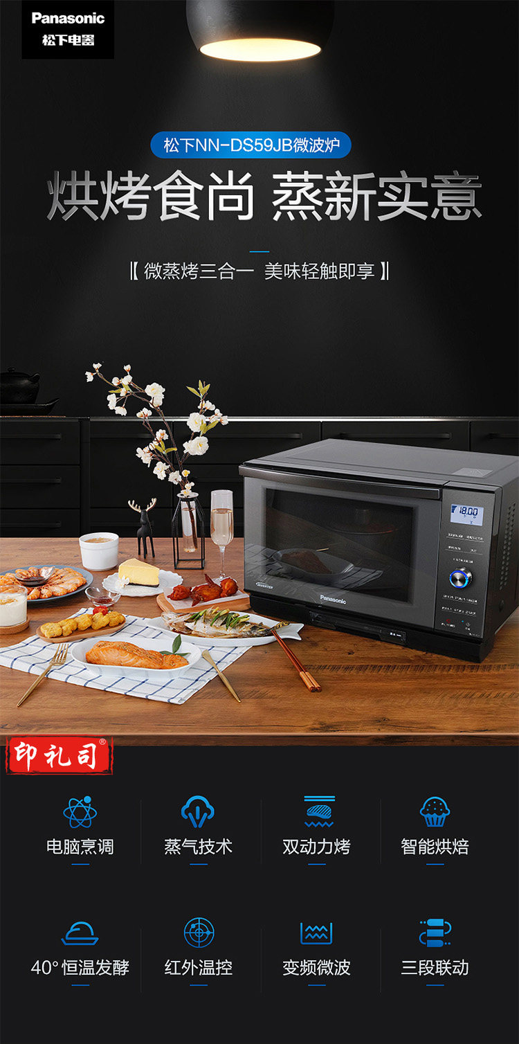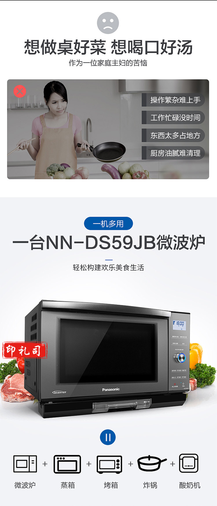松下(Panasonic)NN-DS59JB 27升家用微波炉 微蒸烤一体机 平板式加热 除味去污自清洁