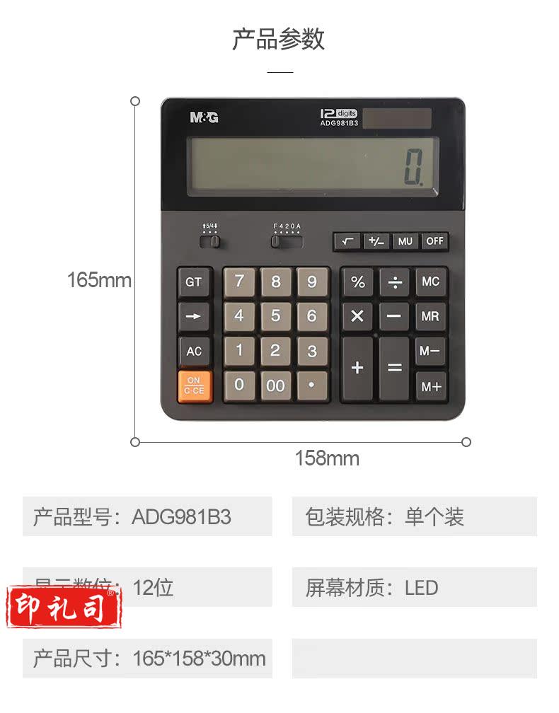 晨光ADG981B3 通用12位大屏幕计算器 咖啡色