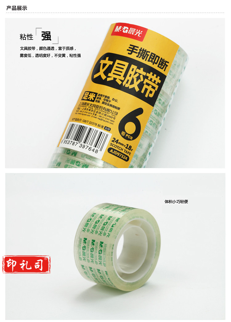 晨光(M&G)AJD97325 24mm*30y高透易撕便携小胶带(6卷装)