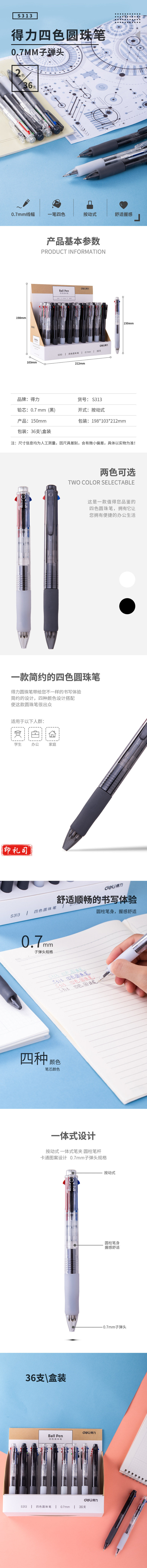 得力S313四色圆珠笔0.7mm子弹头(混)