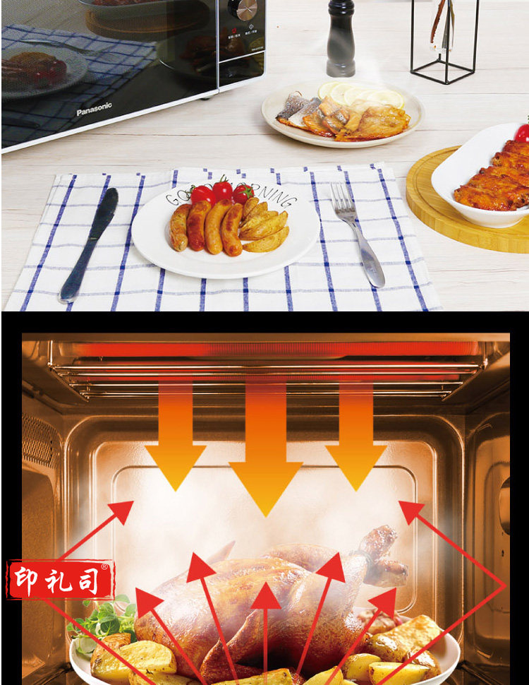 松下(Panasonic) NN-GF37JW 臻品微波炉 智能变频烧烤家用微波炉 旋钮式 23升