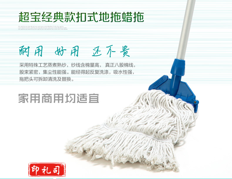 超宝C-014 扣式地拖银色杆黄拖头 家用酒店工厂物业客厅铝合金杆拧水拖把