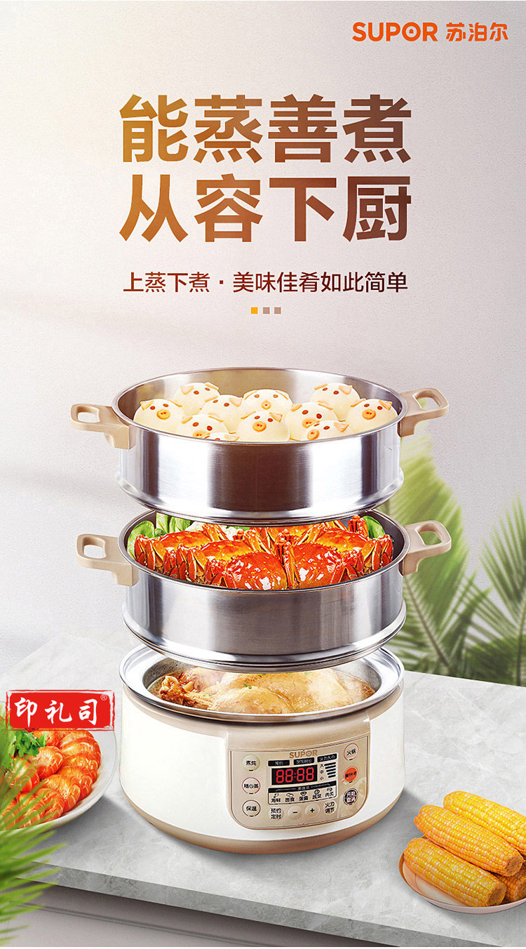 苏泊尔ZN28YC808-130 多用途锅电蒸锅 多功能电火锅蒸锅电煮锅 三层大容量 分体式可拆洗