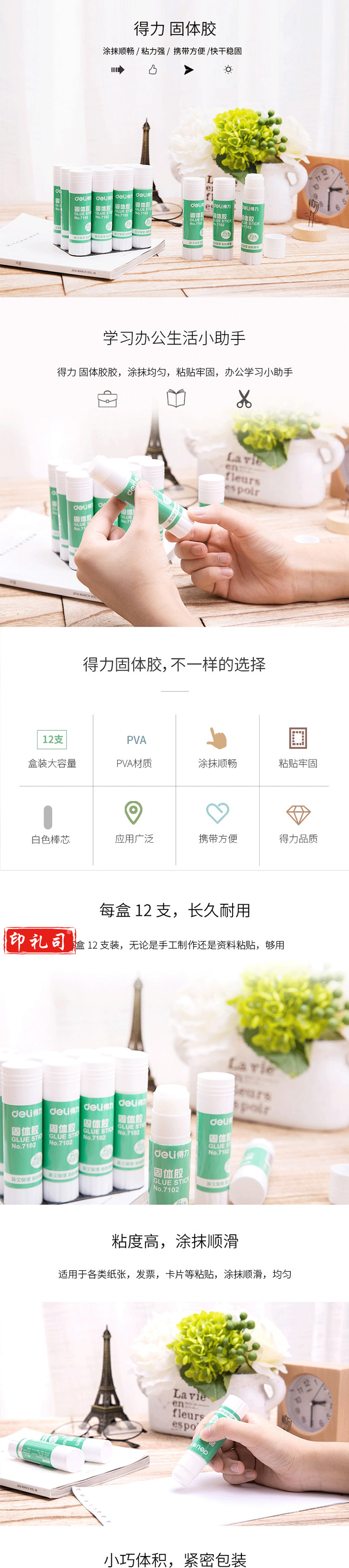 得力 7101 12支/盒 9g固体胶 白色 (单位:盒)