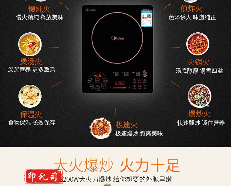 美的(Midea)C22-RH2268 电磁炉 十档大火力超薄触控面板