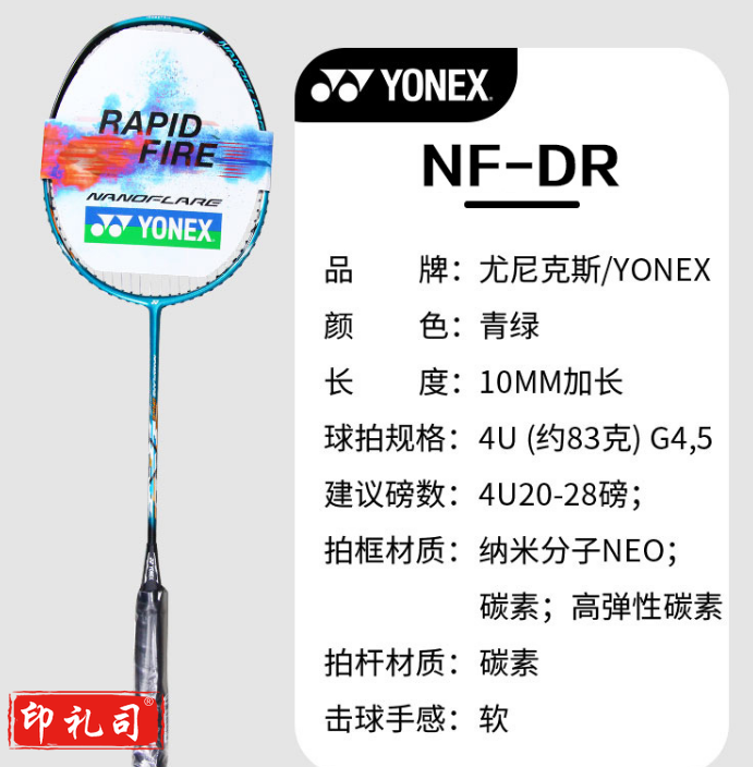 YONEX尤尼克斯羽毛球拍疾光羽拍NF-DR全碳素单拍已穿线含手胶 青绿