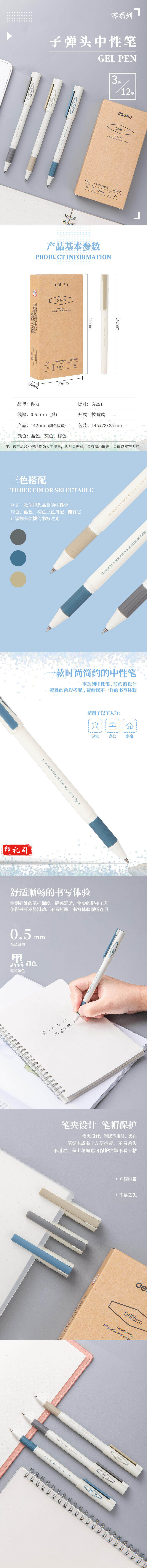 得力A261学生中性笔0.5mm子弹头(黑)