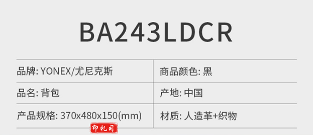 YONEX尤尼克斯羽毛球包运动双肩背包BA243LDCR黑色