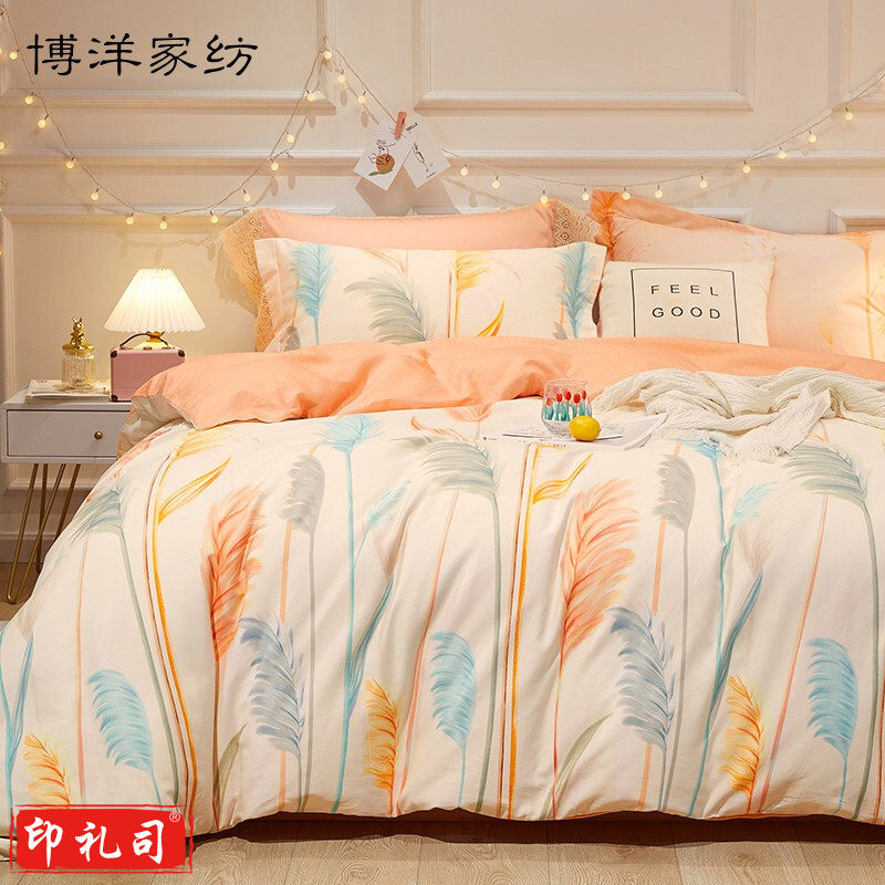 博洋家纺纯棉四件套简约清新全棉套件双人床单被套 芦森180cm