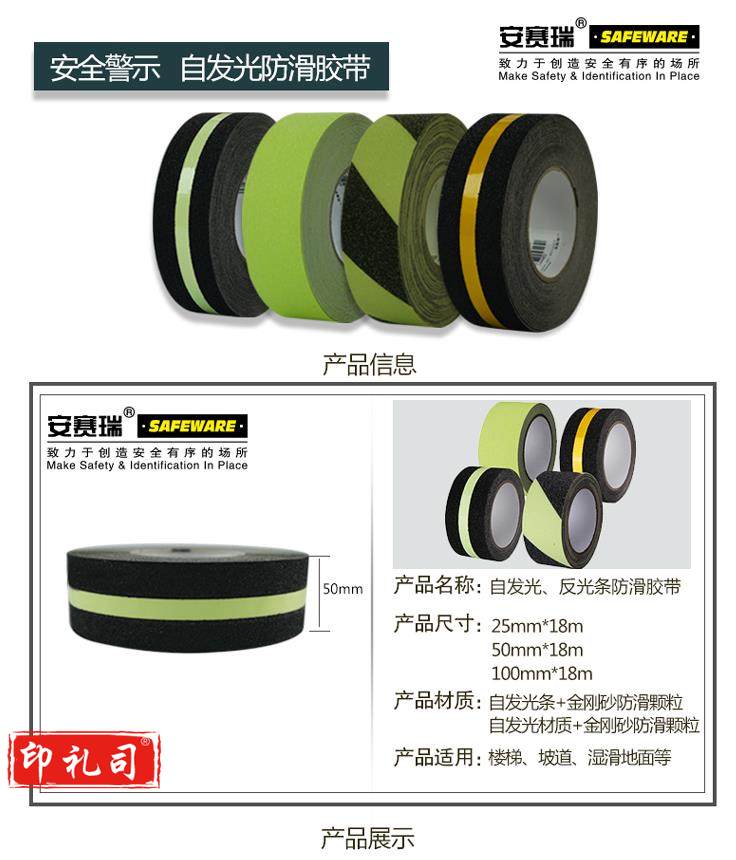 自发光防滑胶带(条纹款)夜光防滑胶带 警示防滑贴 2.5cm×18m