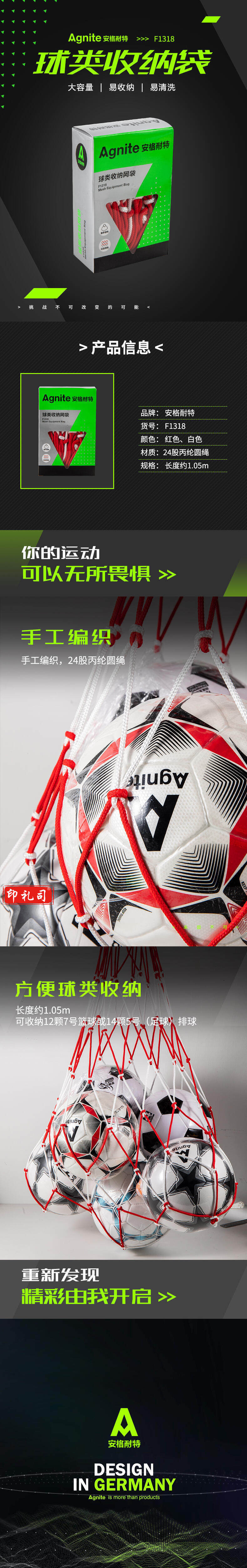 安格耐特F1318球类收纳网袋(红色+白色)