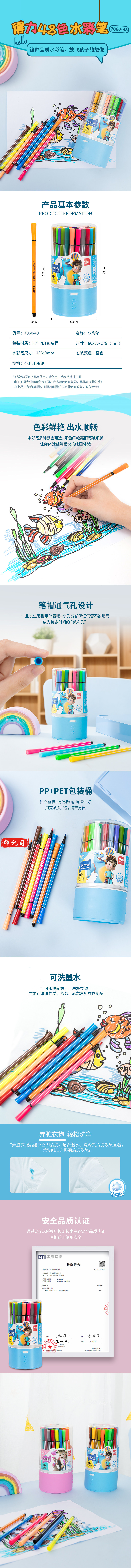 得力7060-48色细六角杆水彩笔(蓝色)