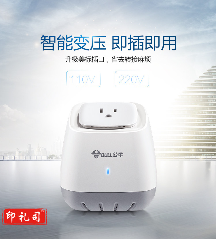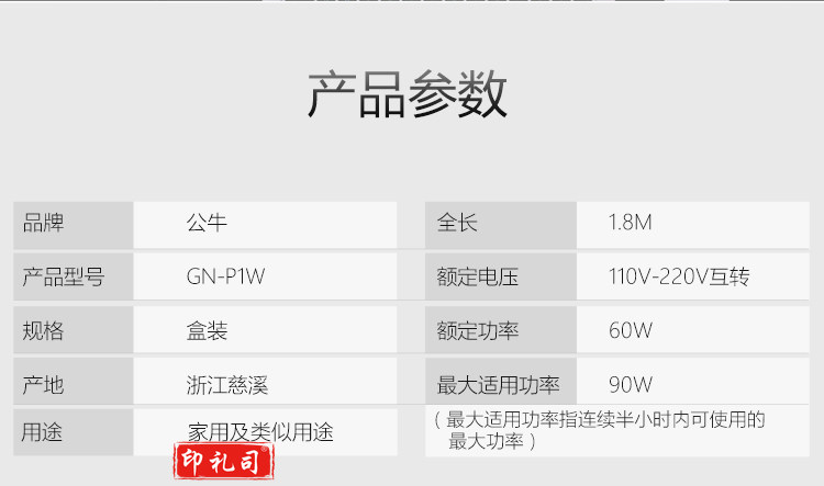 公牛 GN-P1W 美国日本1.8米美标电器变压器插座国内使用220V/110V互转额定功率60W内适用