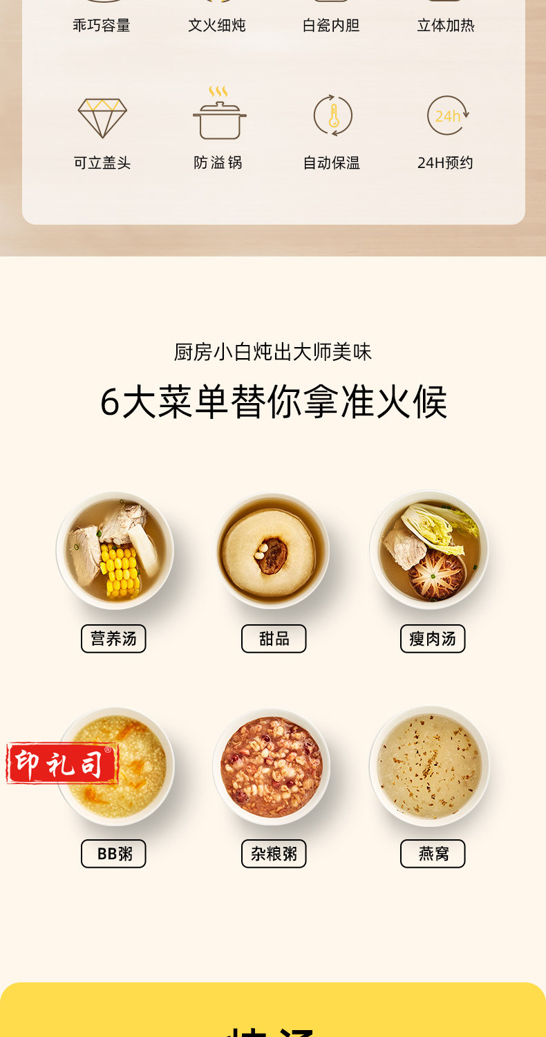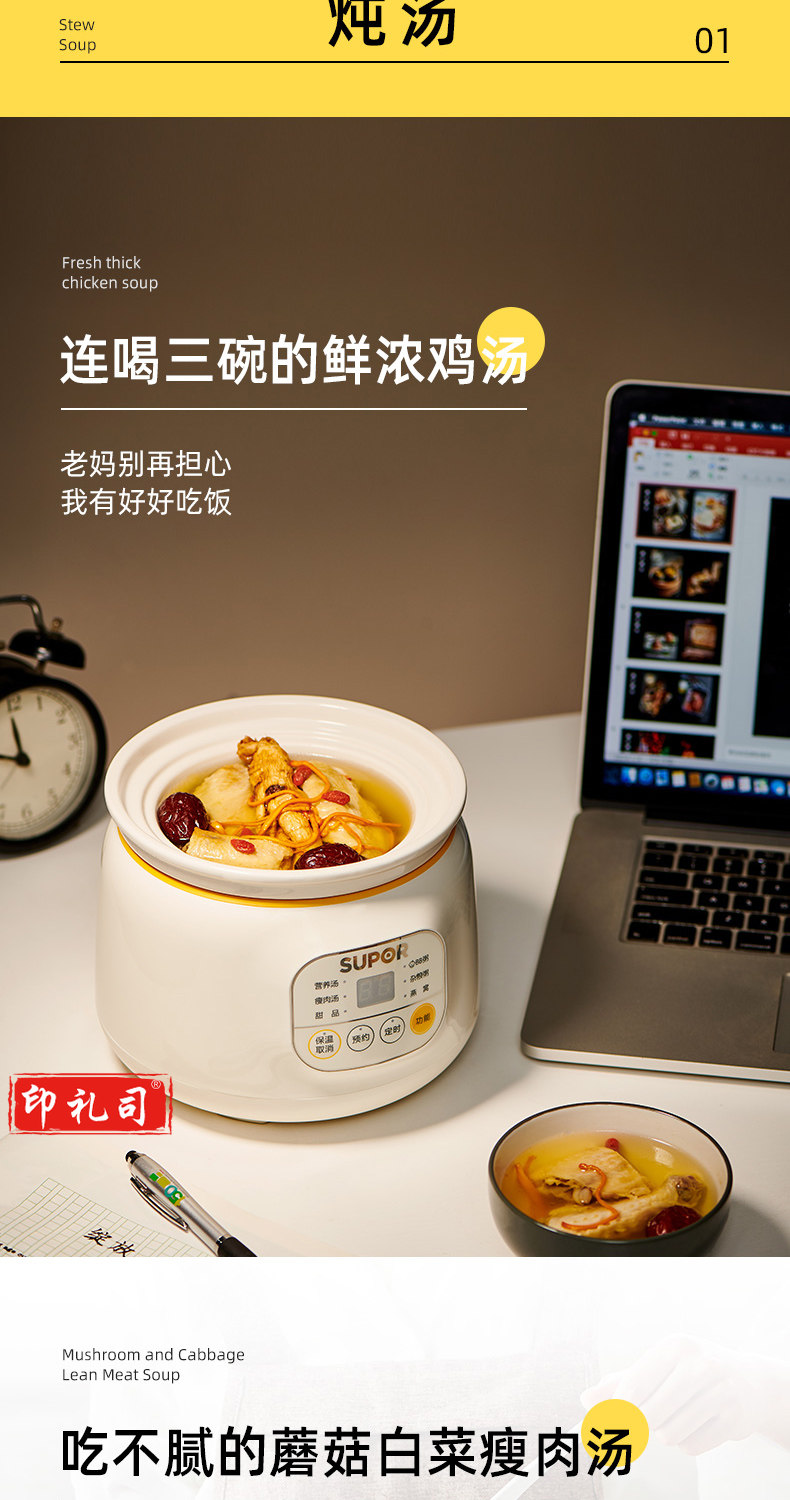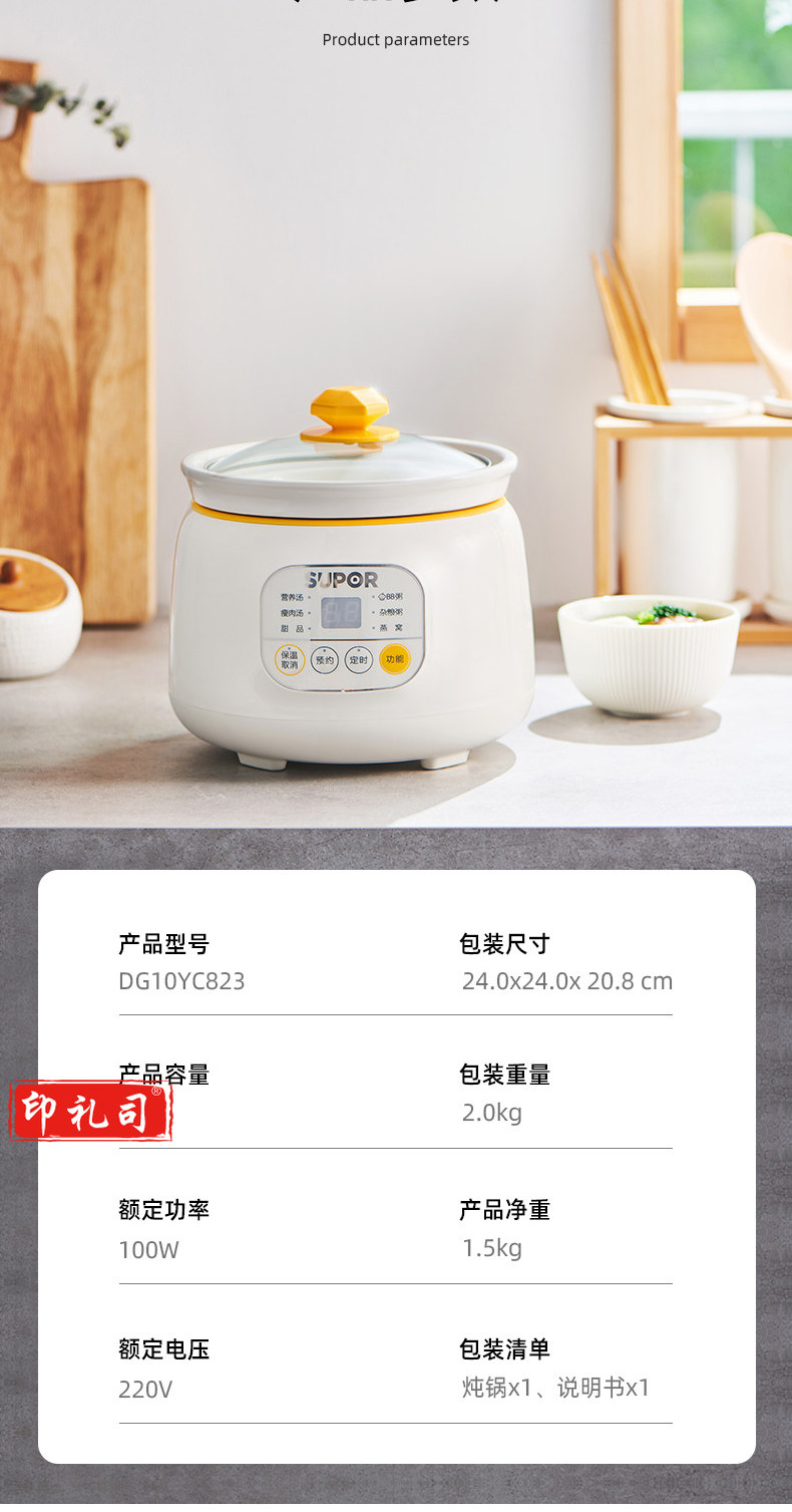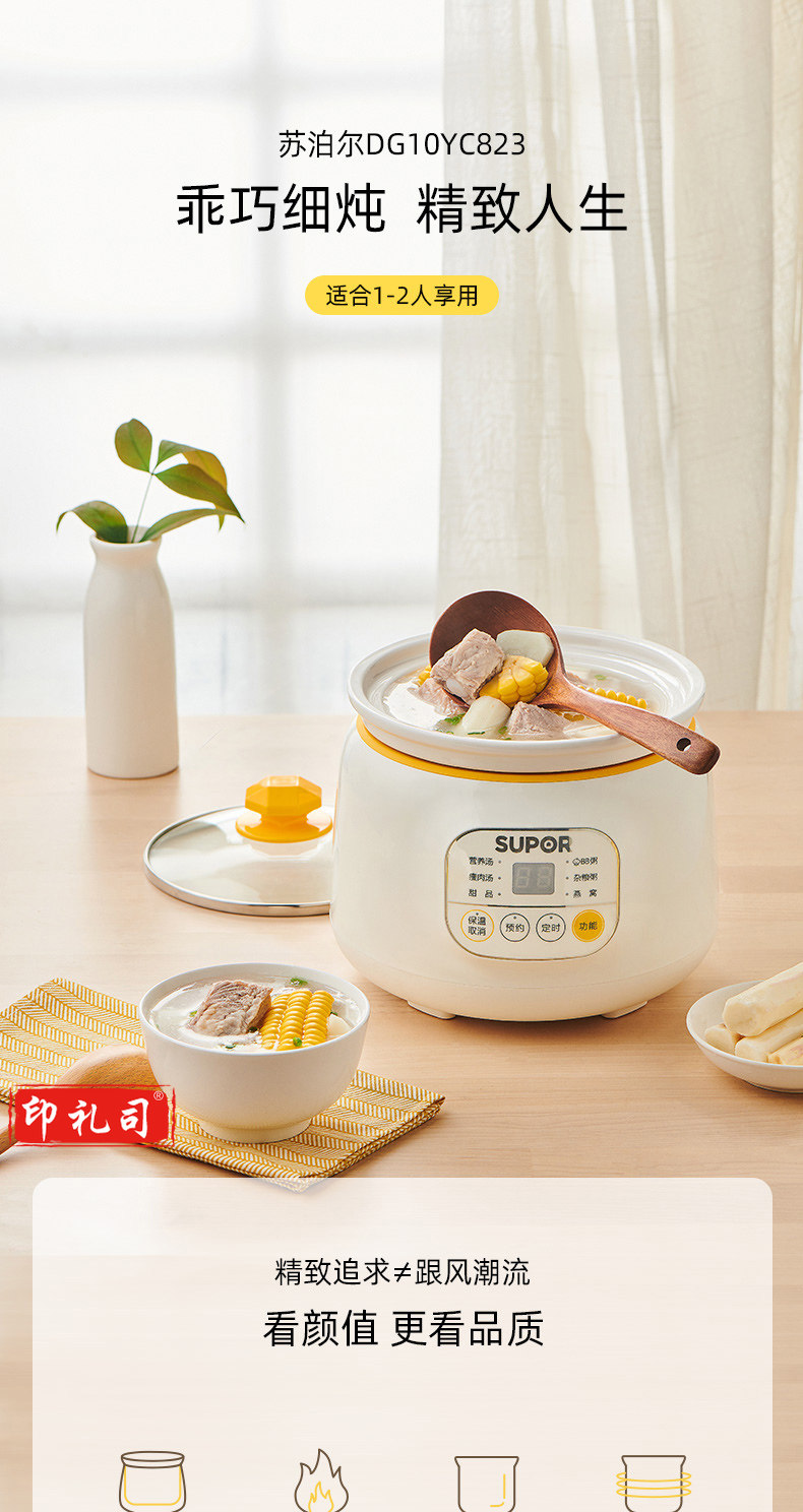苏泊尔DG10YC823 多功能电炖锅 1L 可预约