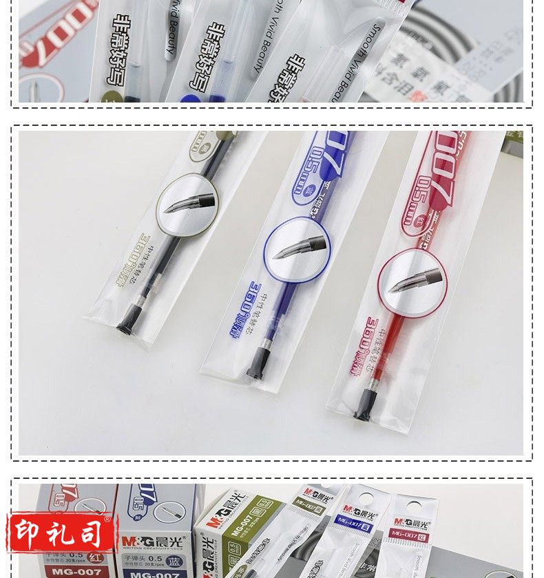 晨光(M&G)MG007 0.5mm 中性笔笔芯全针管替芯 蓝色 20支/盒
