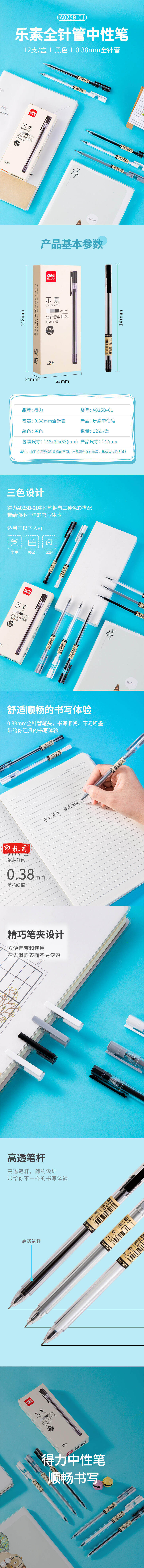 得力A025B-01中性笔0.38mm全针管(黑)