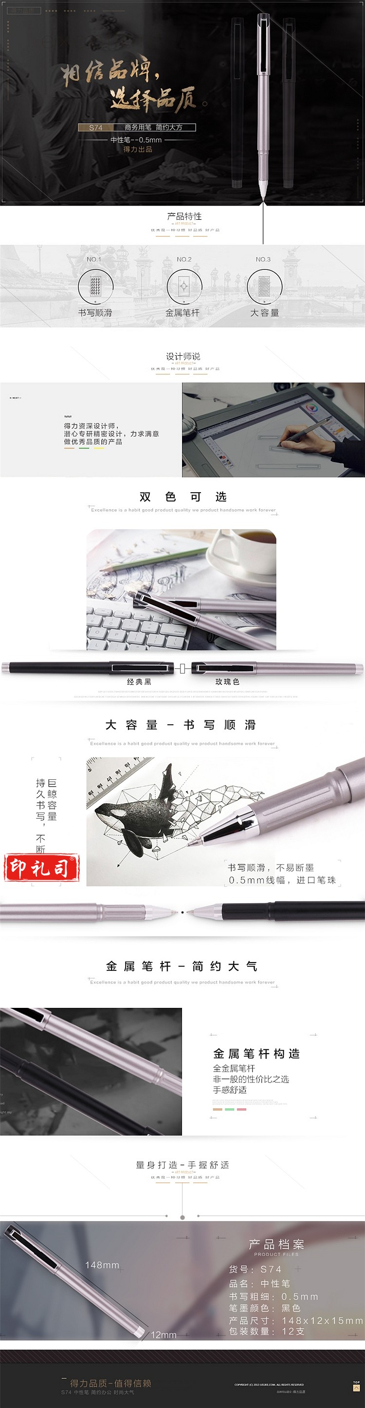 得力S74中性笔 水笔(黑)