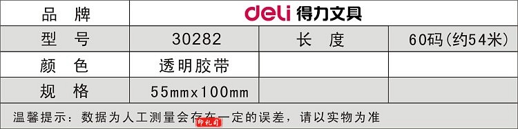 得力 30282 封箱胶带 55mmx60y (单位:筒)