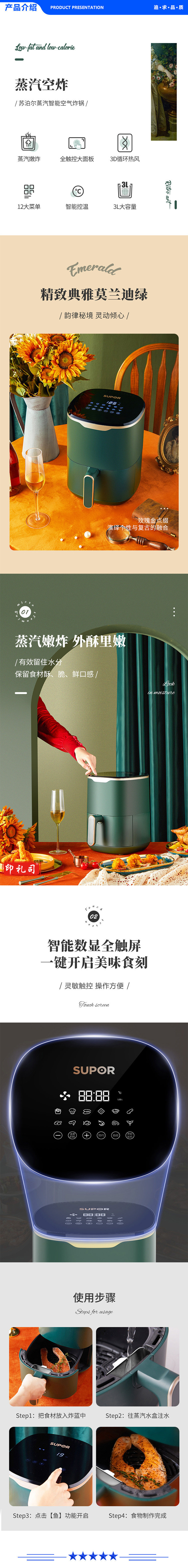 苏泊尔 SUPOR KD30DQ815 空气炸锅 家用3L大容量 多功能无油烟