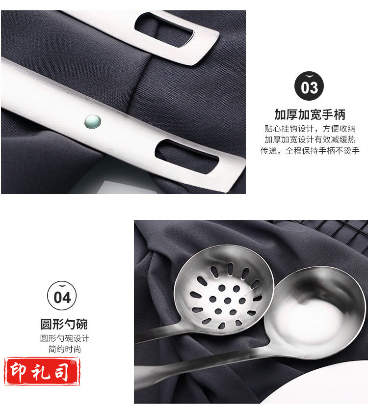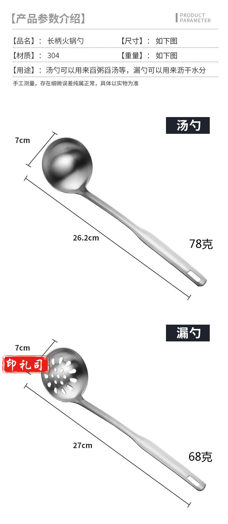 7公分 304不锈钢汤勺漏勺 加厚长柄汤漏勺 2件套