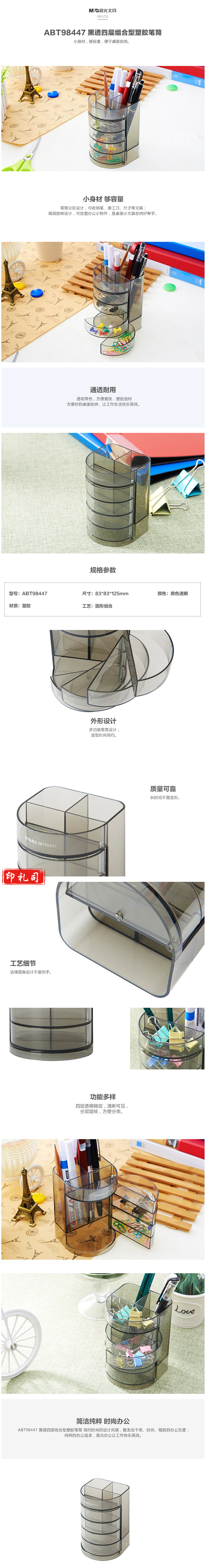 晨光(M&G)黑透四层组合型塑胶笔筒ABT98447