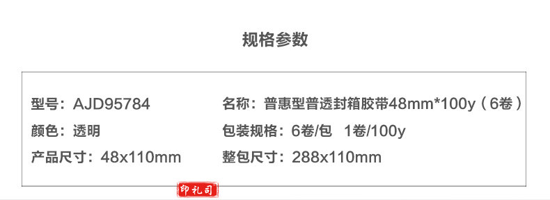 晨光 M&G 普惠型普透封箱胶带 AJD95784 48mm*100y 6卷/筒
