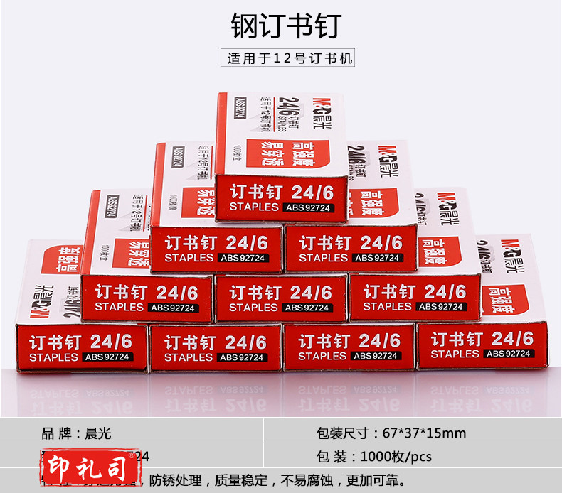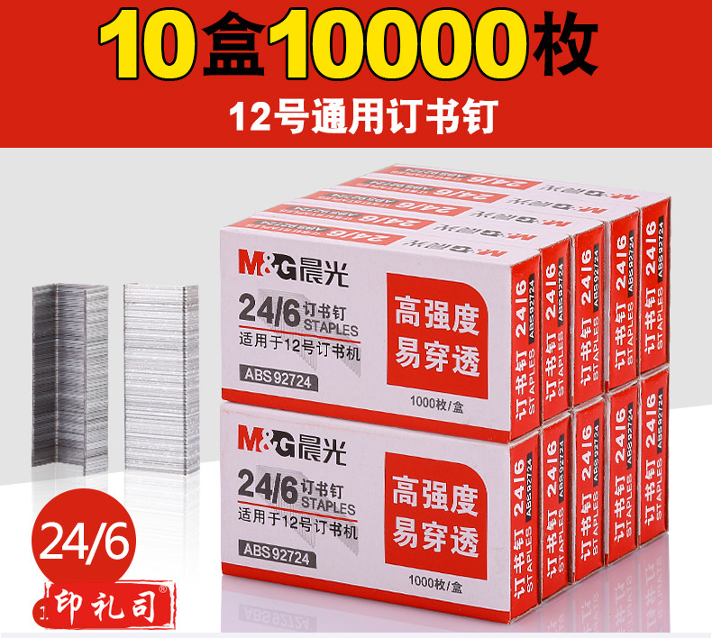 晨光(M&G)12号高强度订书钉 通用订书针ABS92724 一包10盒装