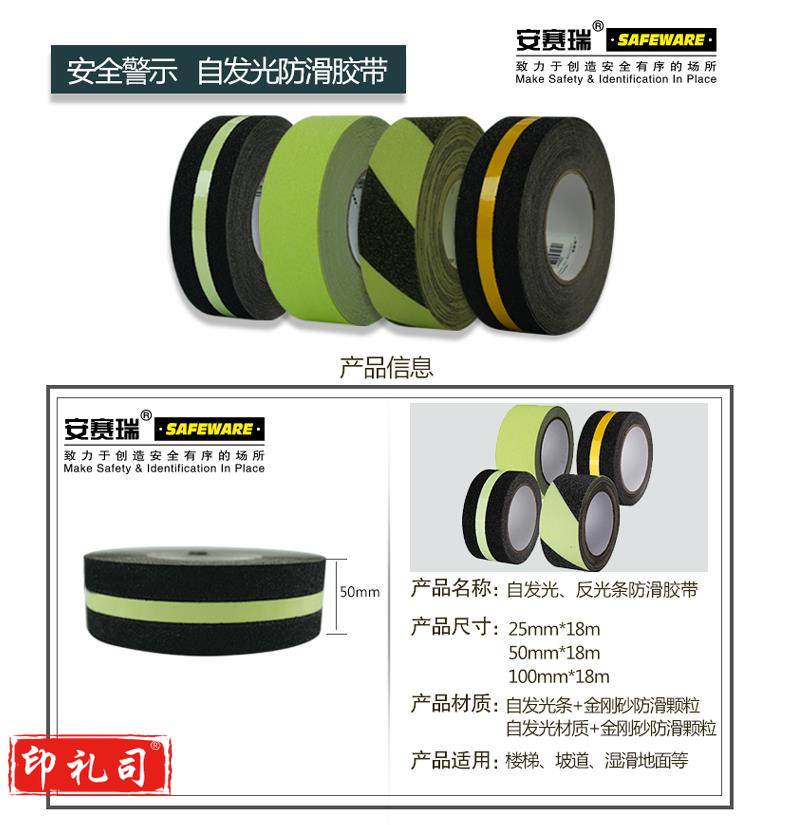 安赛瑞 反光条防滑胶带(黄/黑)反光防滑胶带 黄黑警示防滑贴 5cm×18m