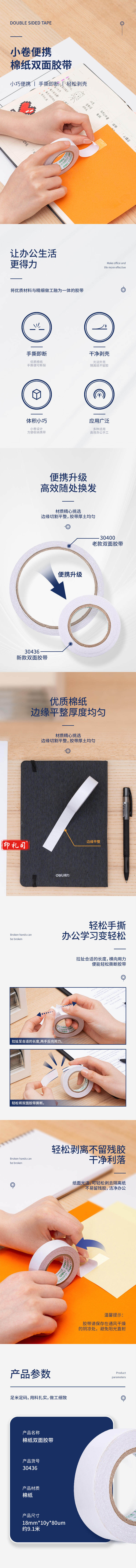 得力30436小卷芯棉纸双面胶带18mm*10y*80um(白色)(1卷/袋)