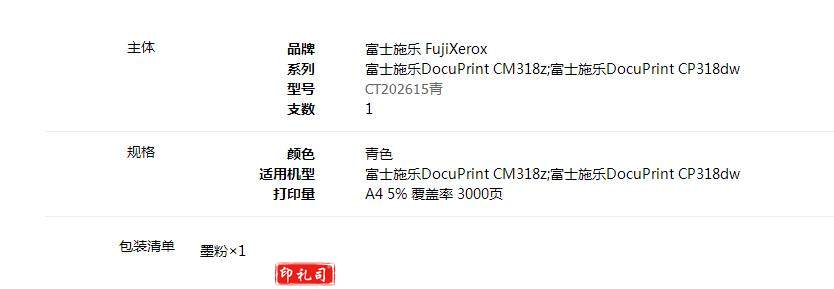 富士施乐(FUJI XEROX)CT202615 青色墨粉筒(适用于CM318z/CP318dw