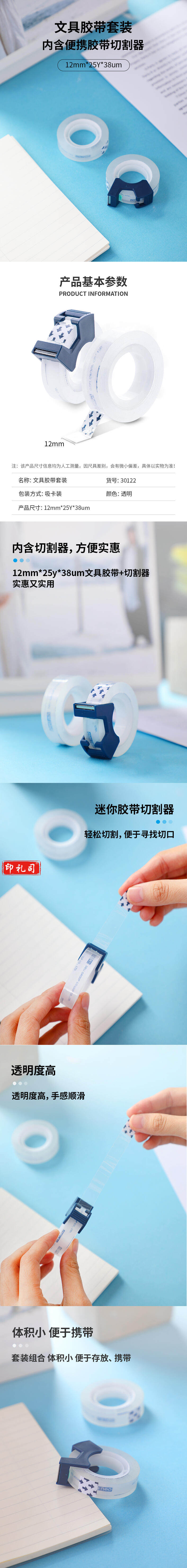 得力30122高透文具胶带套装12mm*25Y*38um(高透)(2卷/卡)