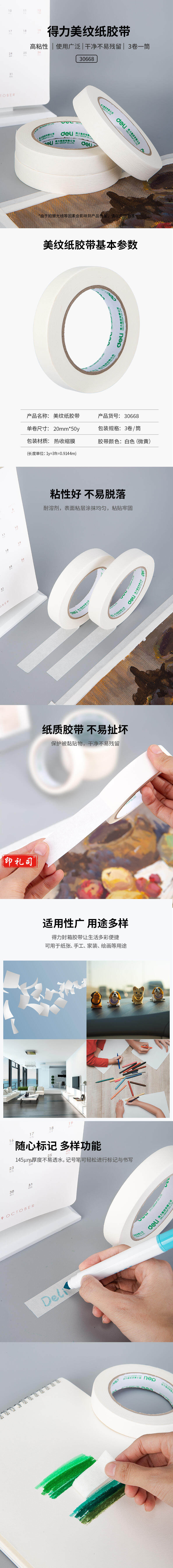 得力30668美纹纸胶带20mm*50y*145um(白色)(3卷/筒)