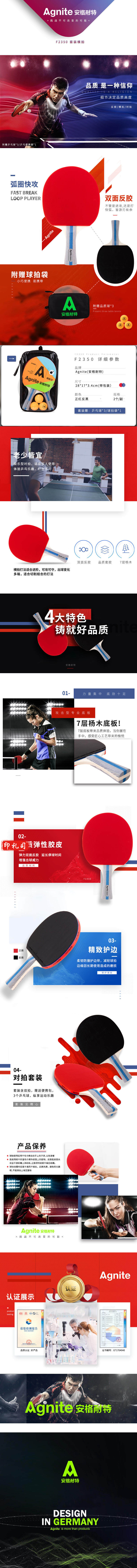 安格耐特F2350乒乓球拍(正红反黑)(2个/副)