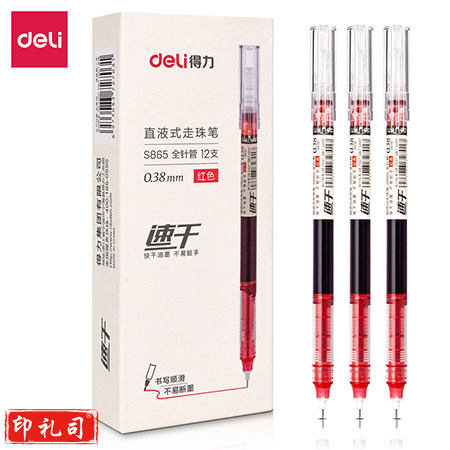 得力S865直液式走珠笔0.38mm全针管(红)(支)r