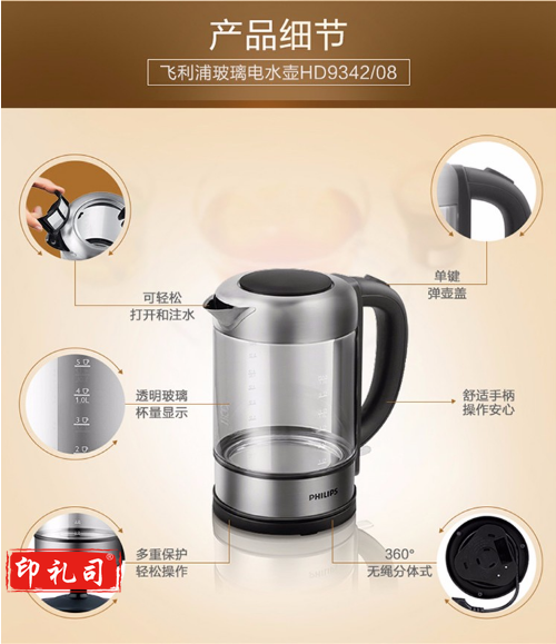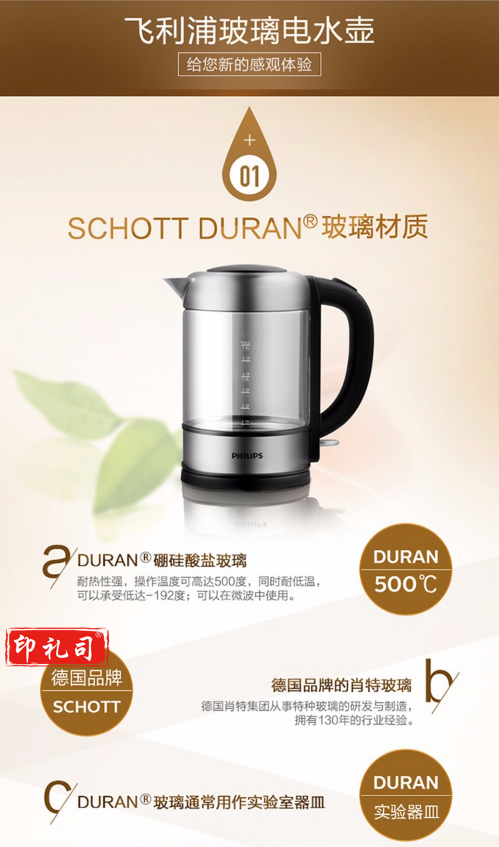 飞利浦(PHILIPS)HD9342/08 电水壶热水壶电热水壶德国肖特玻璃 1.5L烧水壶