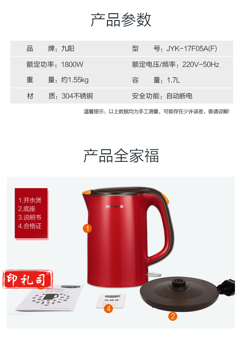 九阳 JYK-17F05A 双层防烫自动断电 电热水壶1.7L(计价单位:台)