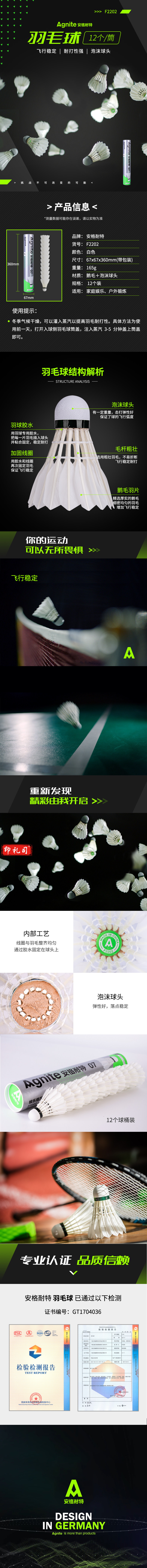 安格耐特(Agnite)F2202羽毛球(白色)(12个/筒)