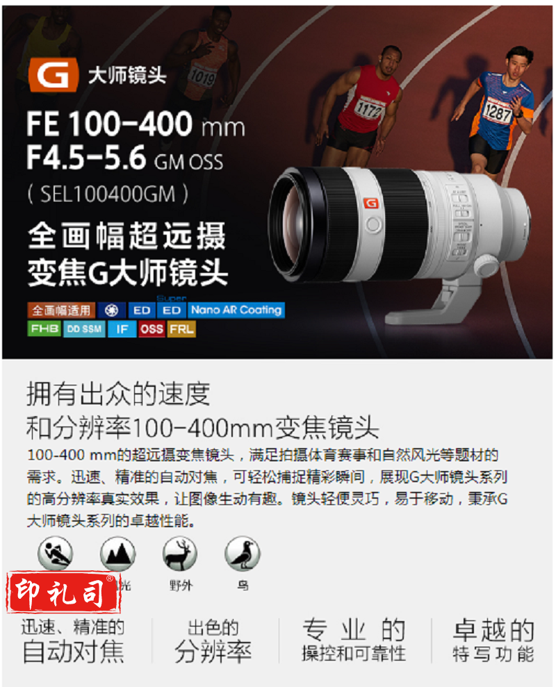 索尼(SONY)FE 100-400mm F4.5–5.6 GM OSS全画幅超远摄变焦G大师镜头